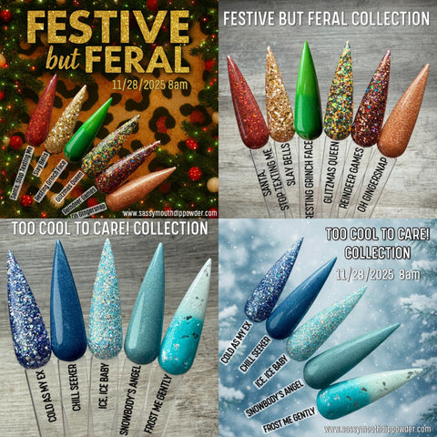 Not one, but two new collections! Get both the 'Festive, But Feral' collection & the 'Too Cool to Care' collection! You'll get all eleven new releases!