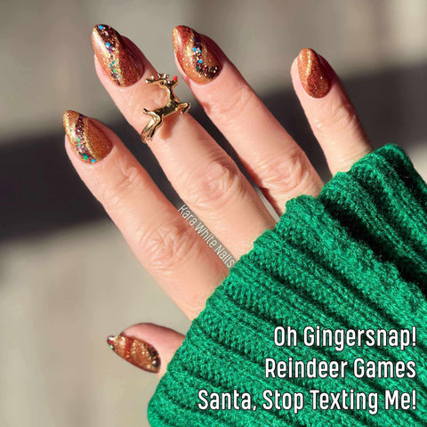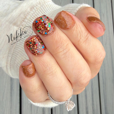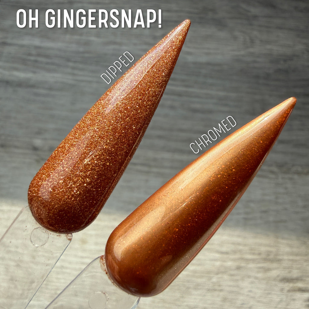 🤎 Oh Gingersnap! 🤎 A warm, spicy gingerbread bronze loaded with golden shimmer. Wear it dipped for a cozy sparkle or chrome it for a metallic shine. Perfectly sweet with a little bit of holiday spice.