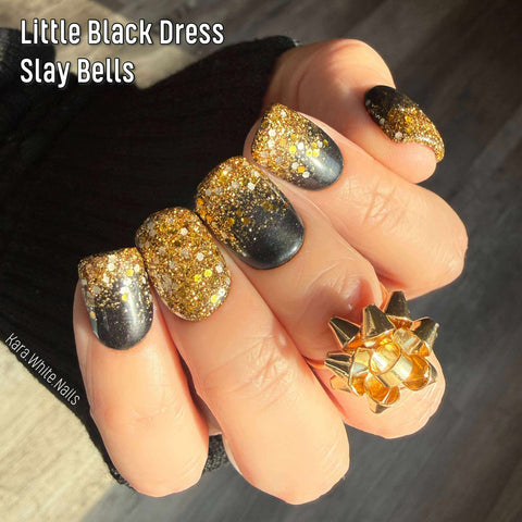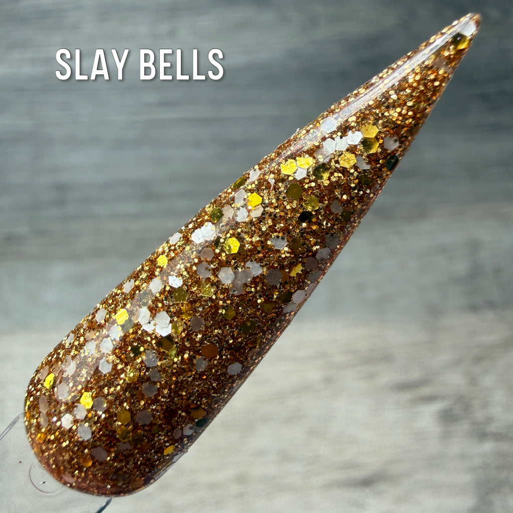 🔔 Slay Bells 🔔 A full-on holiday sparkle explosion—packed with ultra-shiny gold glitter and icy white hexes that twinkle like a glam winter night. Bold, bright, and ready to slay every festive moment.