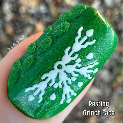 Resting Grinch Face is a sneaky, mood-shifting green that captures all the sass and charm of everyone’s favorite holiday grouch. This subtle thermal shade shifts between a deep, mischievous Grinch green when warm and a brighter, cheerier lime-toned green when cool—perfect for showing off your inner holiday attitude without saying a word.